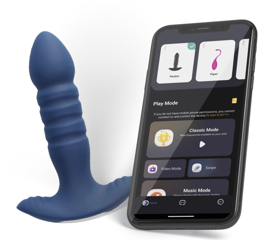 Meet Paxton, our premium prostate massager, that puts pleasure in the palm of your hands with an interactive app offering music mode, video chat, customizable vibration patterns and draw mode for crafting your own sensual sensations, so you can discretely dial up the intensity whether your partner is in the same room or long distance. With 7 thrusting and vibrating modes, each with multiple patterns, you'll never get bored exploring all the ways Paxton can arouse you. Made of silky silicone, usb-rechargable and 100% waterproof, Paxton is the ultimate indulgence for solo play or with a partner, in private or even out and about. Paxton invites you to unlock your fantasies at the touch of a button. The future of pleasure is here.