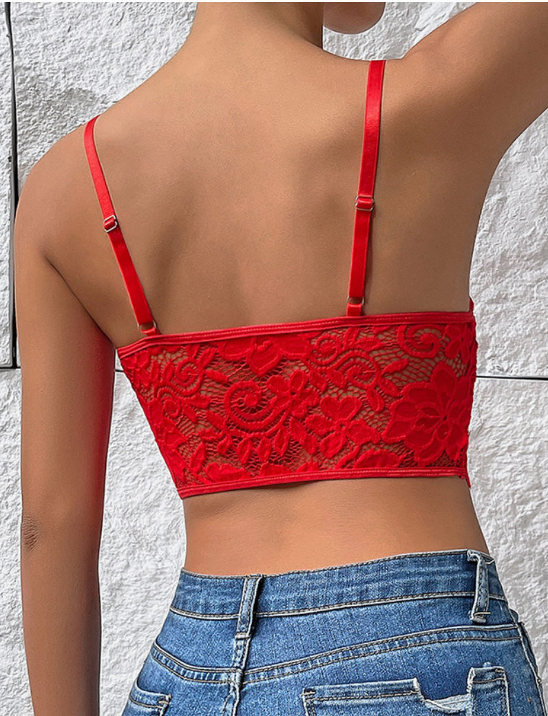 Plain Full Lace V Neck Bracelet Crop Top