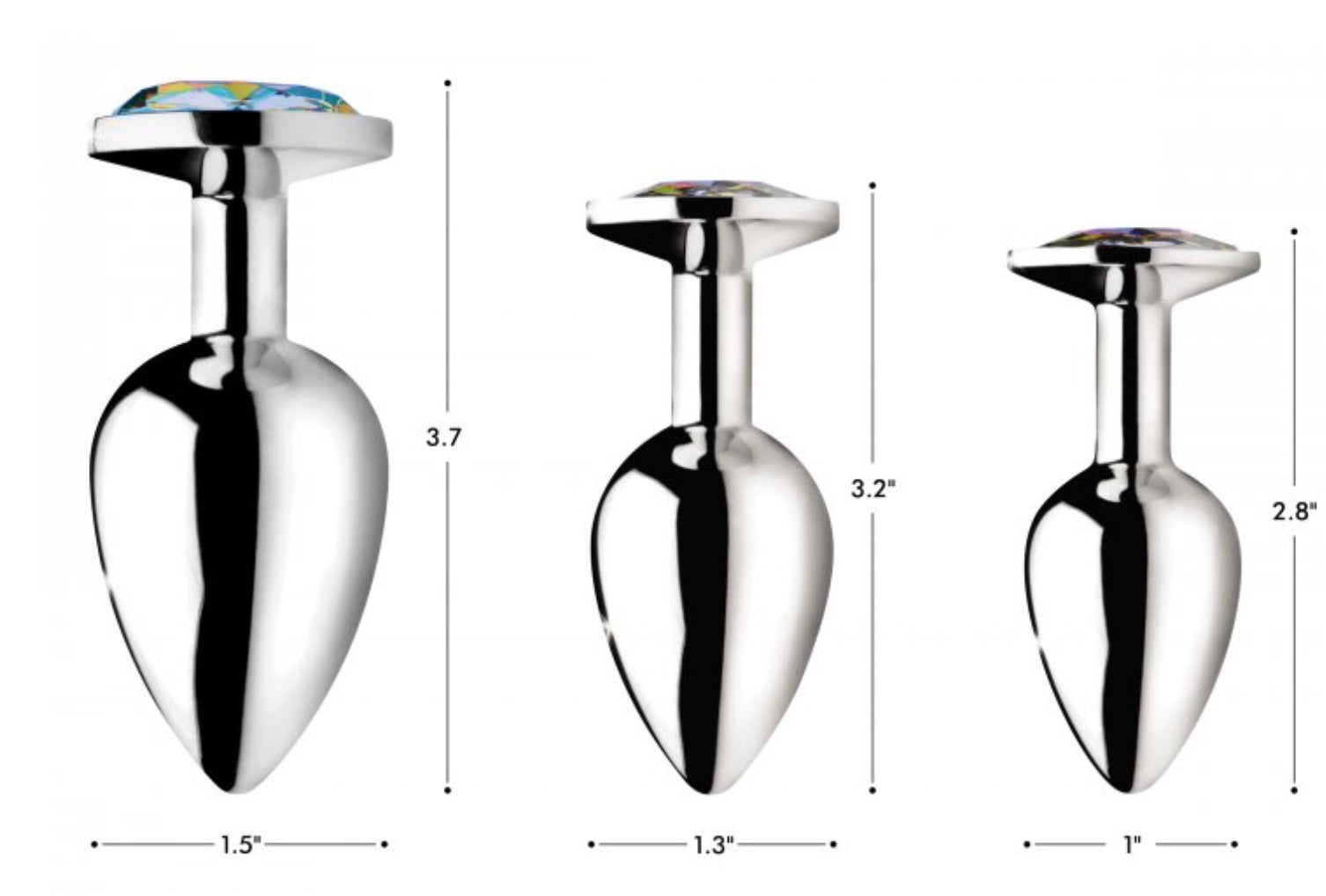 Adorn your derriere with this Rainbow Prism Gem butt plug! The rainbow gem adds dazzling lustful energy to your booty, while the small size and satisfying weight qualify this brilliant butt plug as the main event for the night or as a mild warm up for those more experienced with anal play. Made with nickel free aluminum alloy for a super smooth, non porous, body safe experience! Compatible with water and silicone based lubes so you can use any kind of lubricant for a comfortable anal session. The satisfying weight and density are sure to please anal players of every lover. Excellent for temperature play – heat it up or chill it down for a variety of different backdoor sensations! Clean before and after use with warm water and mild antibacterial soap or toy cleaner. Insert and dazzle your lover with this sensual gem and get their engines going!