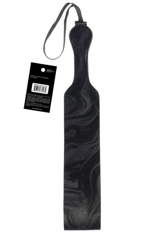 Bend them to your will with every swing of the Velvet Noir Loop Paddle. Designed for those who savor a slower, sensual build, this paddle delivers soft, widespread spanks that ignite desire with every touch. The marbled black loop glides across the skin, creating a thuddy impact that teases as much as it tantalizes. Whether you’re setting the stage with gentle taps or intensifying the moment with firmer strokes, this paddle offers versatile play without the sting of sharper tools. Wrapped in vegan leather with a wrist loop for extra security, the Velvet Noir Loop Paddle keeps you in control as every swing leaves them craving more