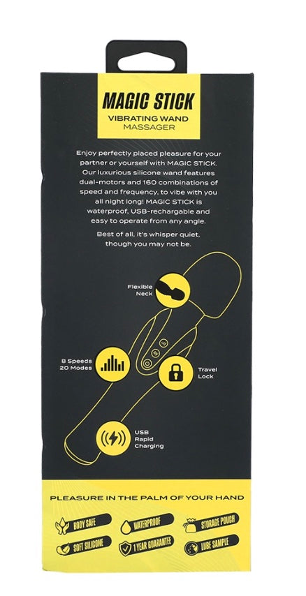 This Magic Stick brings a whole new meaning to “abracadabra”. With 8 speeds to choose from and 20 pulse patterns to explore, the Magic Stick is sure to put you under its sensual sorcery. A flexible neck allows this wand to bend to your body’s every whim while whisper-quiet vibrations keep your secret safe. USB Rechargeable, Waterproof, and phthalate-free, the Magic Stick conjures a climax with the flick of its ultra-soft head. Stow away your magic stick in the included storage pouch and enable the travel lock feature to ensure your Magic Stick stays put until its time to cast its next spell.